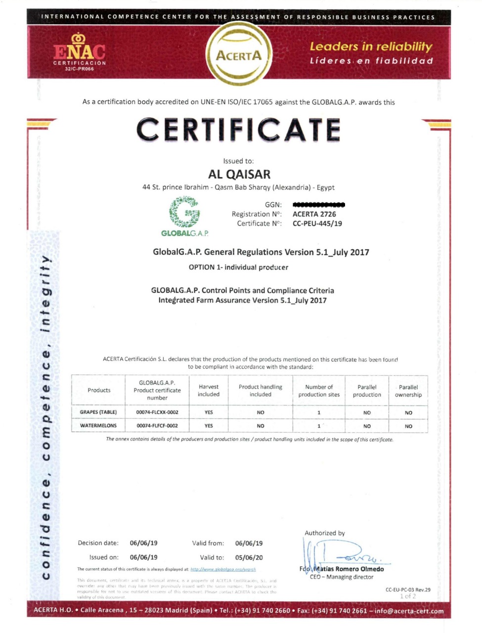 Later on Mr. Ahmed Etman and Mr. Mahmoud Etman took over the family business to grow on what their grandfathers achieved. They founded Al Qayser Company to import, export and distribute the different fruit and vegetables varieties in Egypt and world around. Our farms are managed by our operations department through an integrated food safety and quality management system that complies with the international food industries’ standards. Now, are selling over 1,500 containers per year and steadily increasing each year.