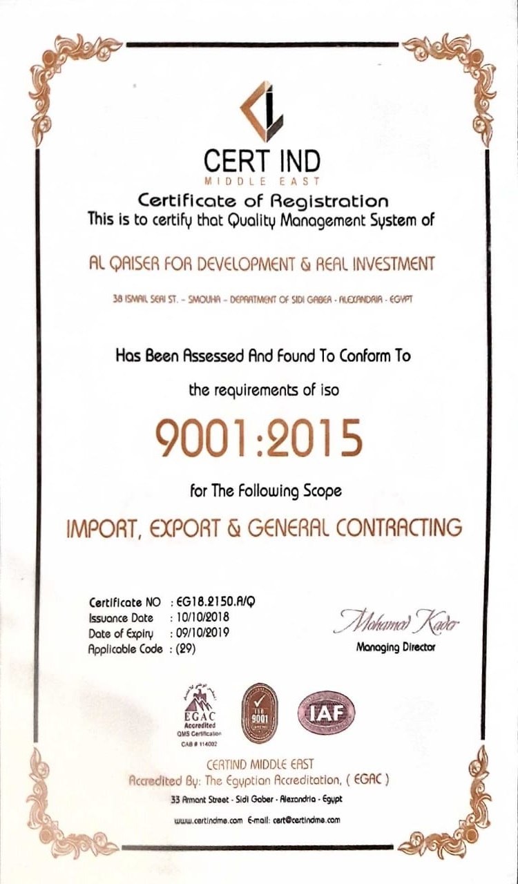 We – Al Qayser Company- was one of the first founded companies in the Egyptian fruits market in in 30th of the past century (precisely, in year 1921) as a private proprietorship for fruit trade in Alexandria fruit market, current shareholders are the third generation. Later on, the Company started to import some exotic fruits to Egypt and distribute to markets and whole sellers all over Egypt. The company then Built its first cold store warehouse consisting of four chilled rooms to preserve our products and our company kept growing until today it is one of Egypt’s largest fruit trade companies.